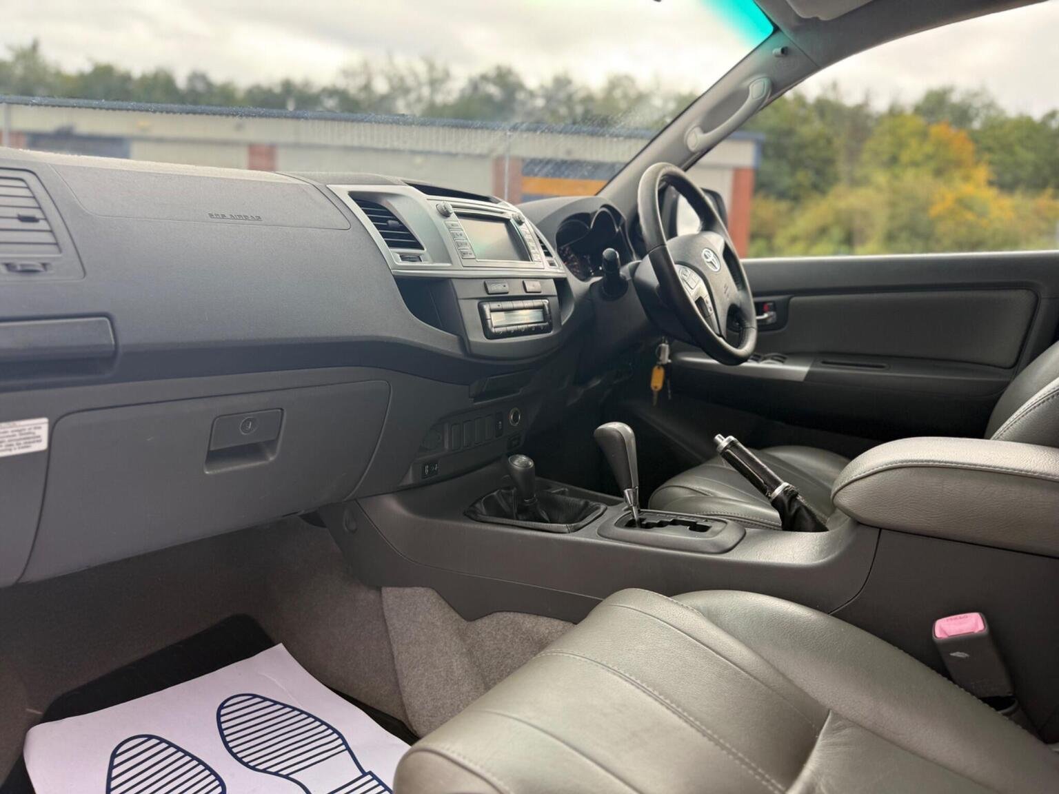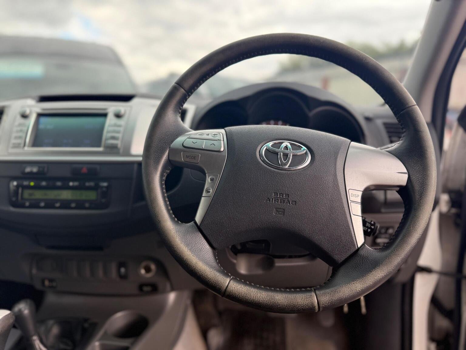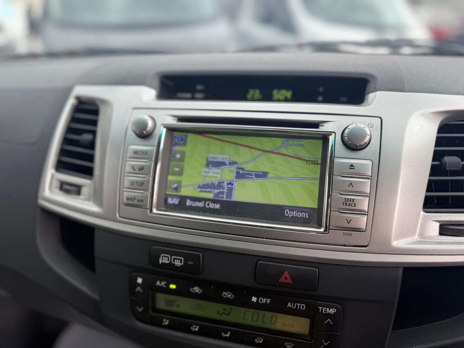 17in Alloy Wheels - 6 Spoke, ABS - Anti Lock Braking System, Airbags - Curtain, Airbags - Driver, Airbags - Front Passenger, Airbags - Front Side, Armrest - Front, Ashtray and Cigar Lighter, Automatic Air Conditioning, Aux-USB Connectivity for MP3 and iPod Connectivity, BAS - Brake Assist System, Bluetooth Connectivity, Body-Coloured Front Bumper, Bottle Holders - Doors, Bumpers - Body Coloured, Bumpers - Rear Chrome Plated, Child Protection Locks, Chrome Side Bars with Integrated Steps, Collapsible Steering Column, Console Box with Lid and Rear Cupholder, Cruise Control, Cupholder - Front and Rear, Differential Locking - Rear, Digital Clock, Door Handles - Chrome, Door Mirrors - Chrome Electric and Heated with Integrated Indicators, Driver and Front Passenger Sun Visors, Drivers Footrest, Dusk Sensing Headlights, Dusk Sensor, EBD - Electronic Brakeforce Distribution, Electric Windows - Front with Drivers Auto Up and Down, Engine Temperature Warning, Front - Double Wishbone with Coil Springs, Front Fog Lights, Front Grille Smoked Chrome with Chrome Surround, Fuel Heater, Fuel Indicator with Low Fuel Warning, Full Size Spare Wheel, Glovebox - Lockable, Headlight - Levelling Adjustment, Headlight Cleaners, Headlight Warning Buzzer, Headlight Washers - Electrically Operated, Headlights - Electronic Levelling, Headrests - Front Height Adjustable, High Mounted Rear Brake Light, Immobiliser, Impact Absorbing Headlining Material, Interior Light, Ladder Rack, Laminated Privacy Glass - Rear windows, Leather Gear Shift Knob, Load Sensing Proportioning System, Lockable Tailgate, Locking Wheel Nuts, Mud Flaps - Front, Mud Flaps - Front and Rear, Mud Flaps - Rear, Multi Information Display, Optitron Dashboard Display, Optittron Meters, Power Assisted Steering - Speed Sensitive, RDS with PTY and EON Settings, Radio Aerial - Roof Mounted, Radio and CD Player, Rear - Leaf Springs With Double Tube Shock Absorbers, Rear Headrests x3, Rear Seat - Removable Base, Rear Seat with Tip-Up Function, Rear Under-Run Protector, Rear View Camera, Rear Window Defogger, Rear Window Demister, Rear-View Camera Display on Toyota Touch, Remote Central Locking, Remote Release for Fuel Cap, Seat Belt Warning - Driver, Seats - Front Premium, Seats - Front Seat-Back Pockets, Seats - Front Sport, Side Impact Beams, Silver-Coloured Insert on Centre Cluster, Speakers x6, Steering Column - Energy Absorbing Deformable and Retracting, Steering Wheel - 4-Spoke Leather with Silver Inserts, Steering Wheel - Audio Controls, Steering Wheel - Leather Trimmed, Steering Wheel - Manual Tilt Adjustment, Steering Wheel 4-Spoke with Integrated Audio Controls and Leather Trim, Storage Box - Central Tunnel - Armrest, TVSS Category 1 Perimeter and Volumetric Alarm, Tachometer, Tilt Adjustable Steering Wheel, Touch Screen - 6.1in, Toyota Touch Audio System, Underseat Storage - Rear, VSC - Vehicle Stability Control, Vehicle Parts Marking - Major Parts Traceable to VIN, iPod and MP3 Connectivity